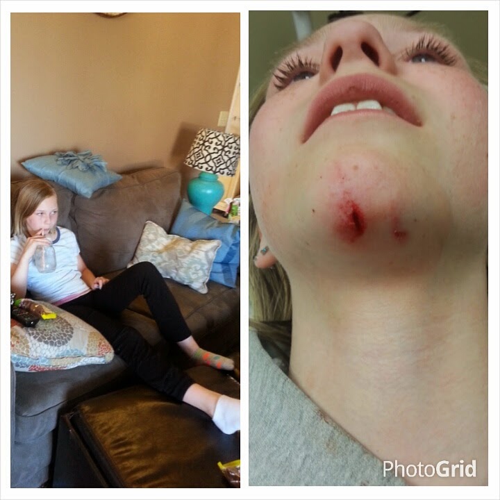 While I was sick last week this also happened. Shelby (aka monkey butt) had a accident at school and she got stitches on her chin and broke her knee cap!!! So she is in a brace for a month.! (her stitches just came out yesterday)